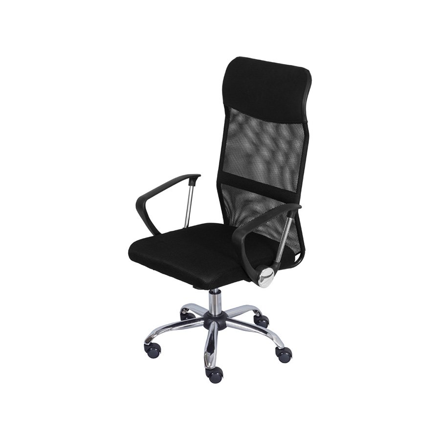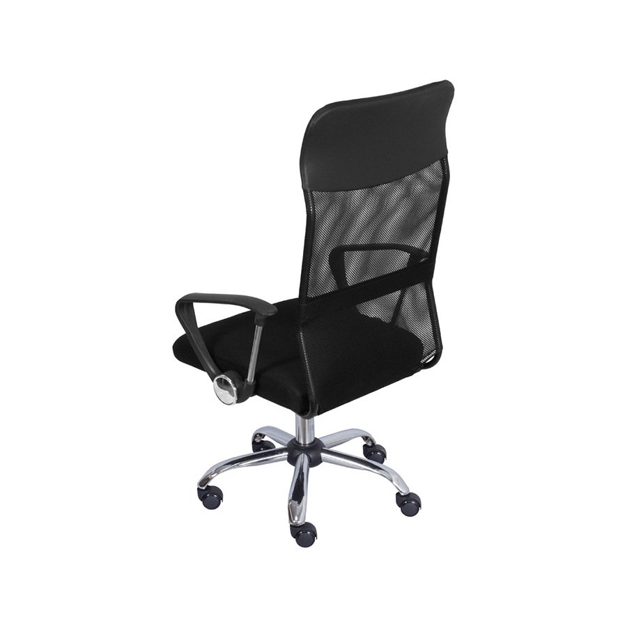 Material: Encosto em tela mesh e assento em PU. Base cromada e rodas em PU
