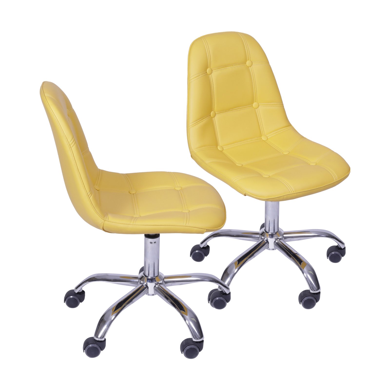 Kit 02 Cadeiras 1110 Botone Amarela Base Rodízio