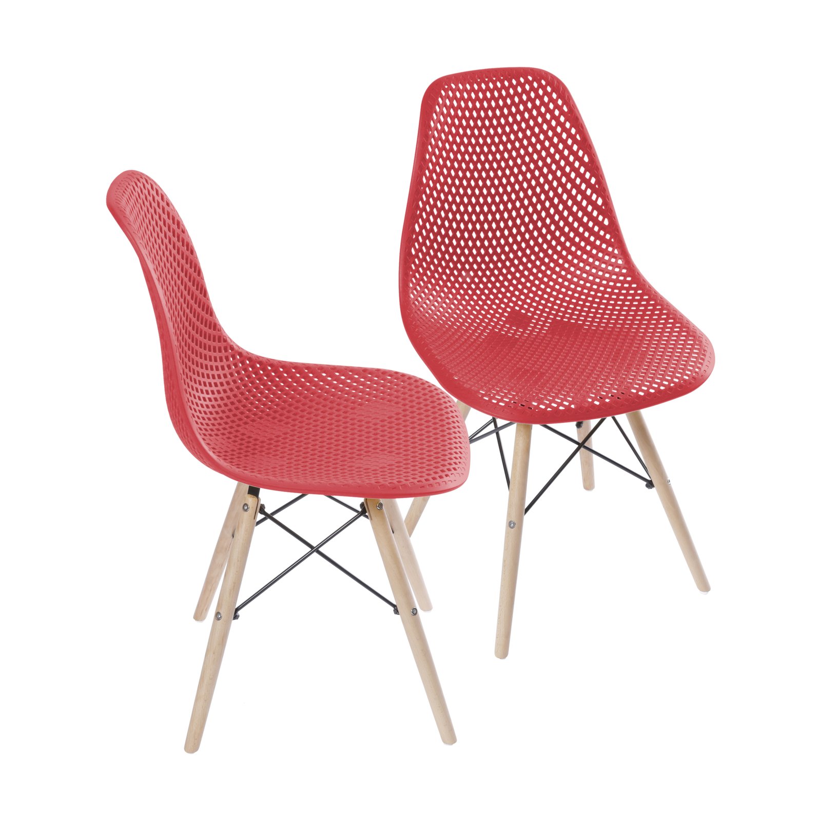 Kit 02 Cadeiras 1119 PP Vermelha Base Madeira