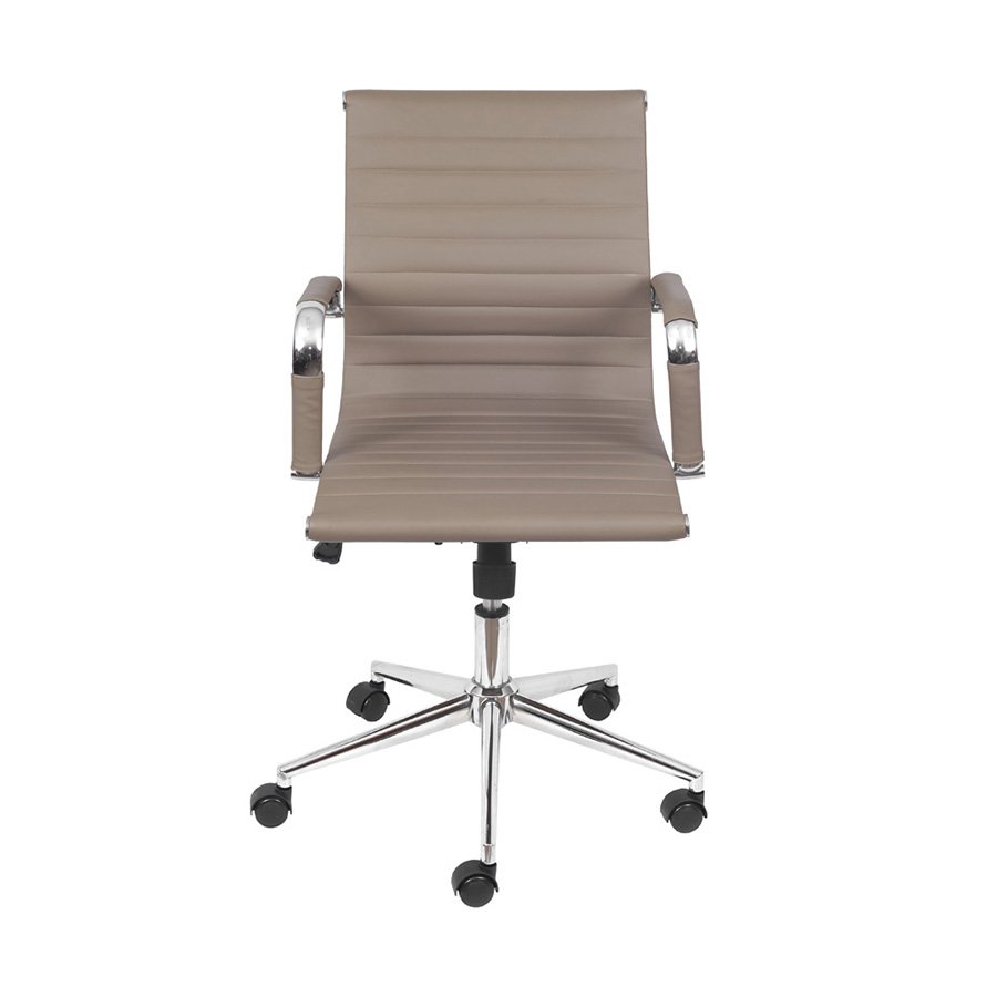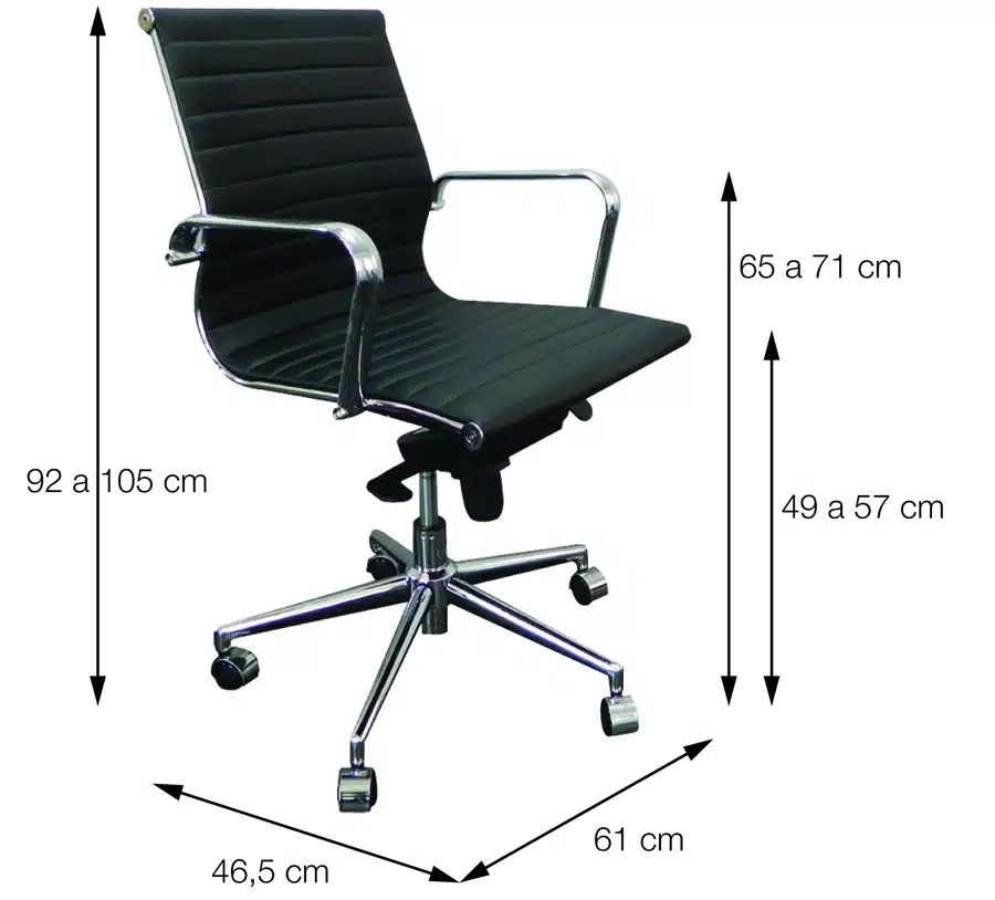 Material: Assento em PU com estrutura cromada. Sistema relax com travamento. Base de encaixe metalizado. Rodas em PU que não danificam o piso. O poliuretano (PU) é um material macio e maleável, ideal para um melhor caimento do estofado. Altamente resistente ao ressecamento, o PU mantém-se macio e agradável ao toque, proporcionando conforto duradouro.
