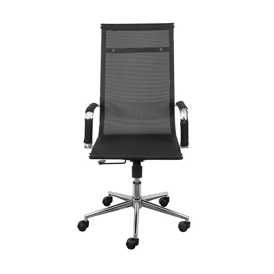 Material: Assento em tela com estrutura cromada. Sistema relax com travamento. Base de encaixe metalizado. Rodas em PU que não danificam o piso
