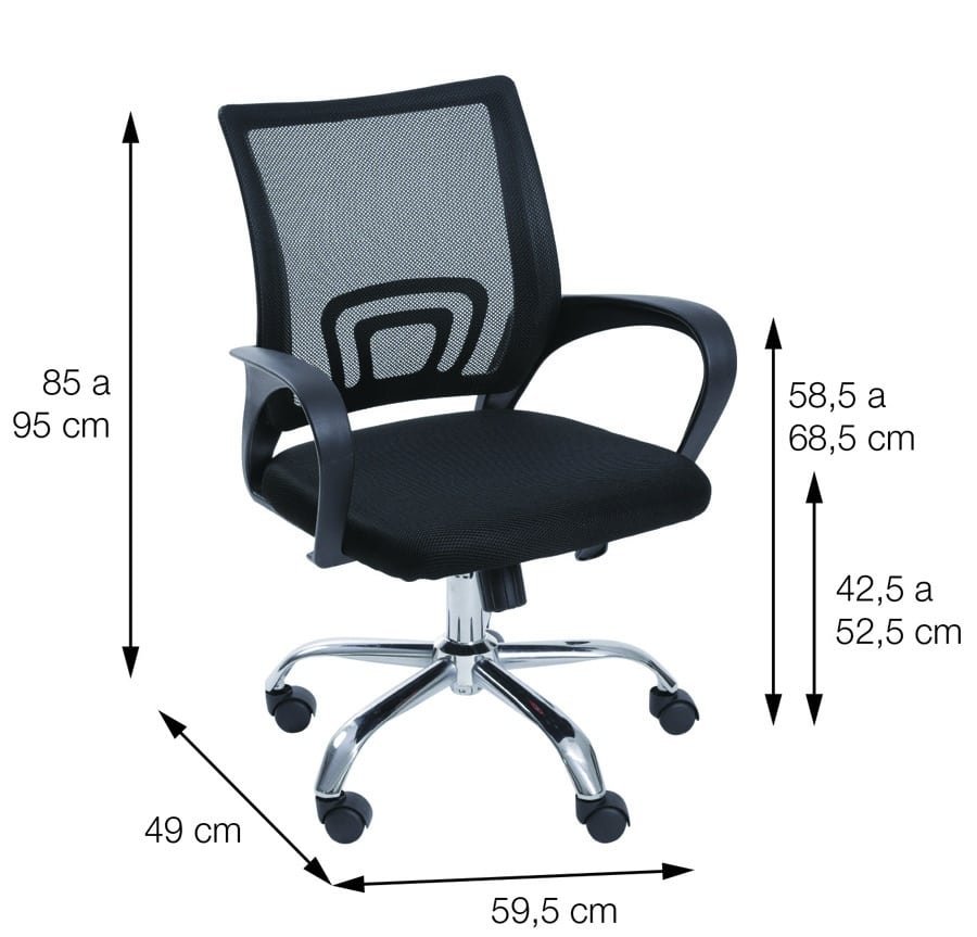 Material: Assento em nylon e encosto em tela mesh. Base cromada e rodas em PU
