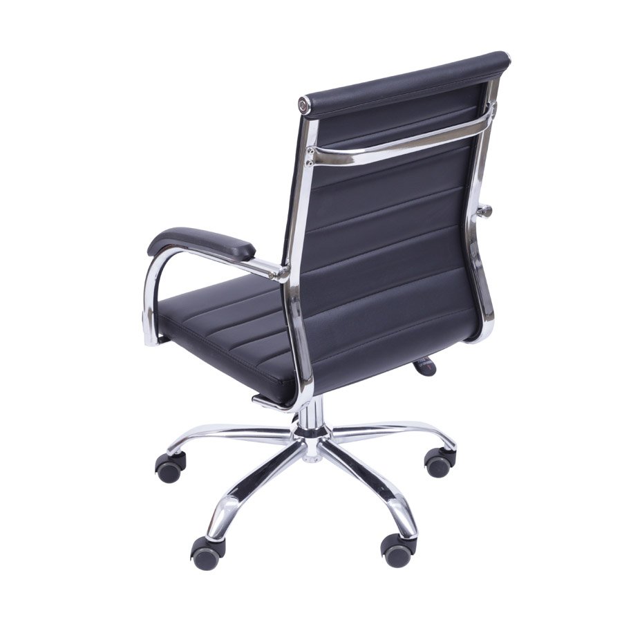 Material: Assento e encosto em PU, com base cromada giratória, sistema relax e rodízios em PU que não riscam o piso. O poliuretano (PU) é um material macio e maleável, ideal para um melhor caimento do estofado. Altamente resistente ao ressecamento, o PU mantém-se macio e agradável ao toque, proporcionando conforto duradouro.