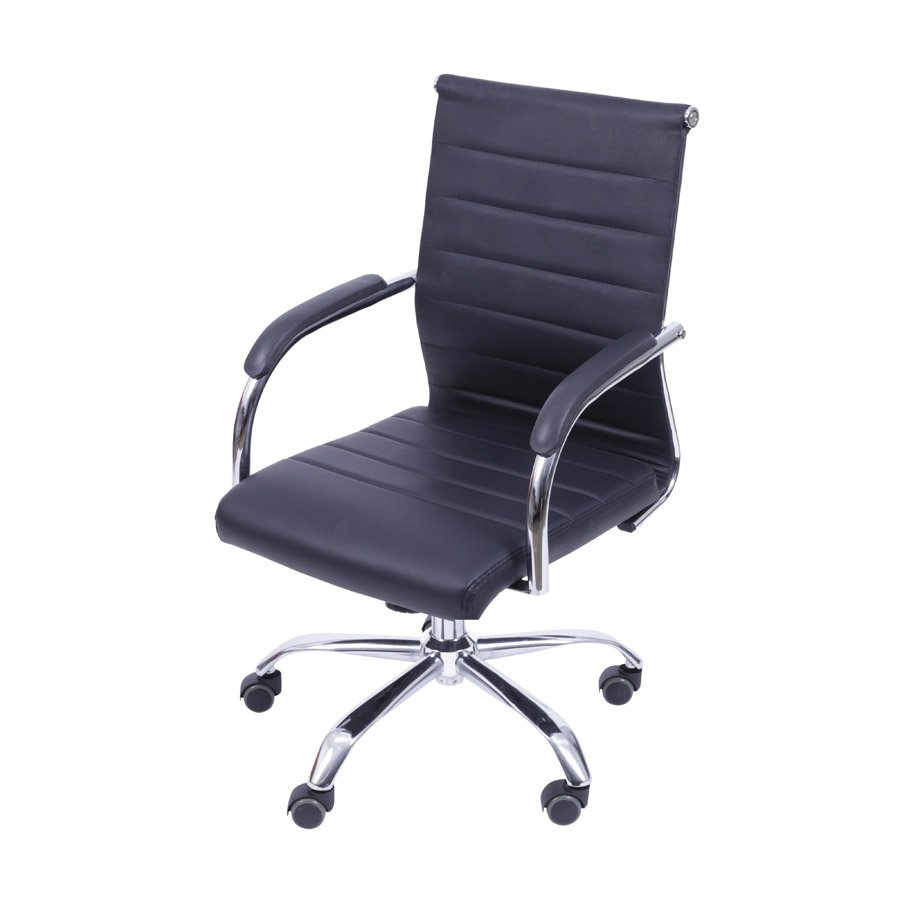 KIT 02 CADEIRAS 3322BAIXA RODIZIO PRETA EM P.U. BASE CROMADA