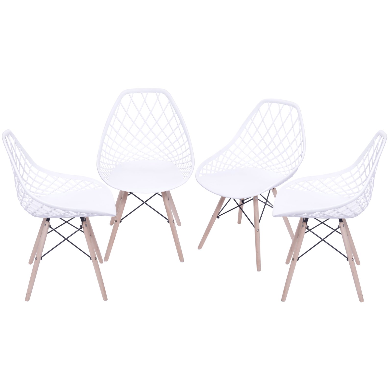 Kit 04 Cadeiras 1118 PP Branca Base Madeira