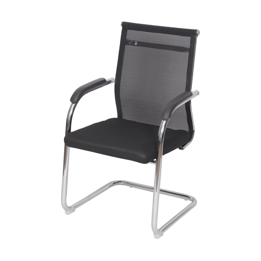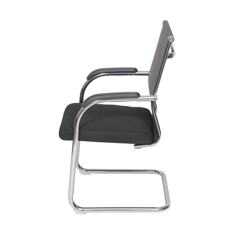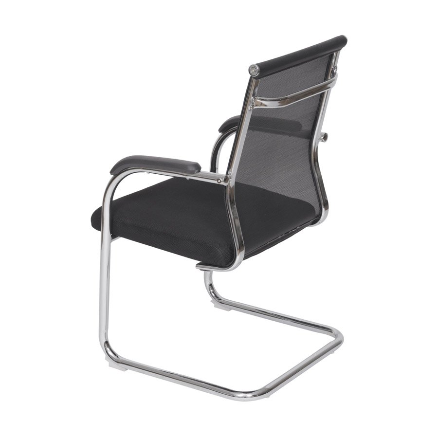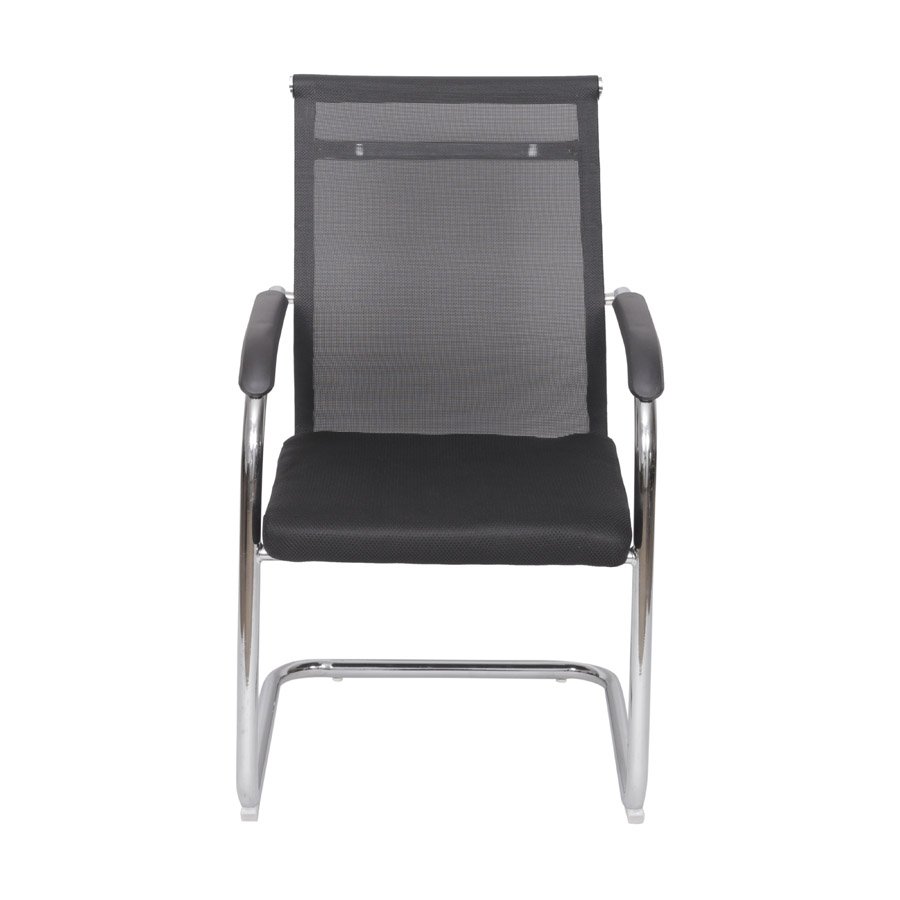 KIT 5 CADEIRAS 3312 FIXA PRETA ASSENTO PU ENCOSTO TELA B. CROMADA