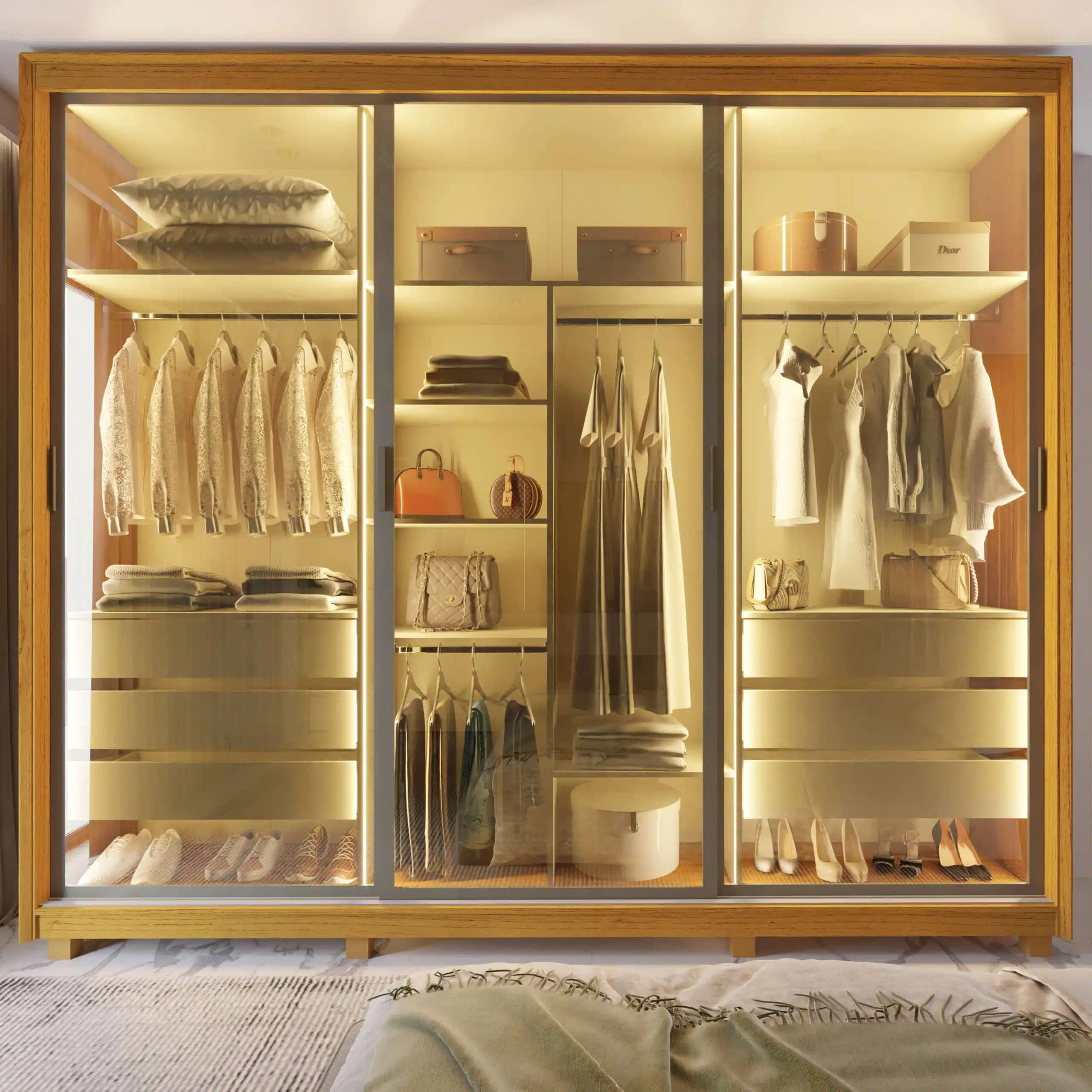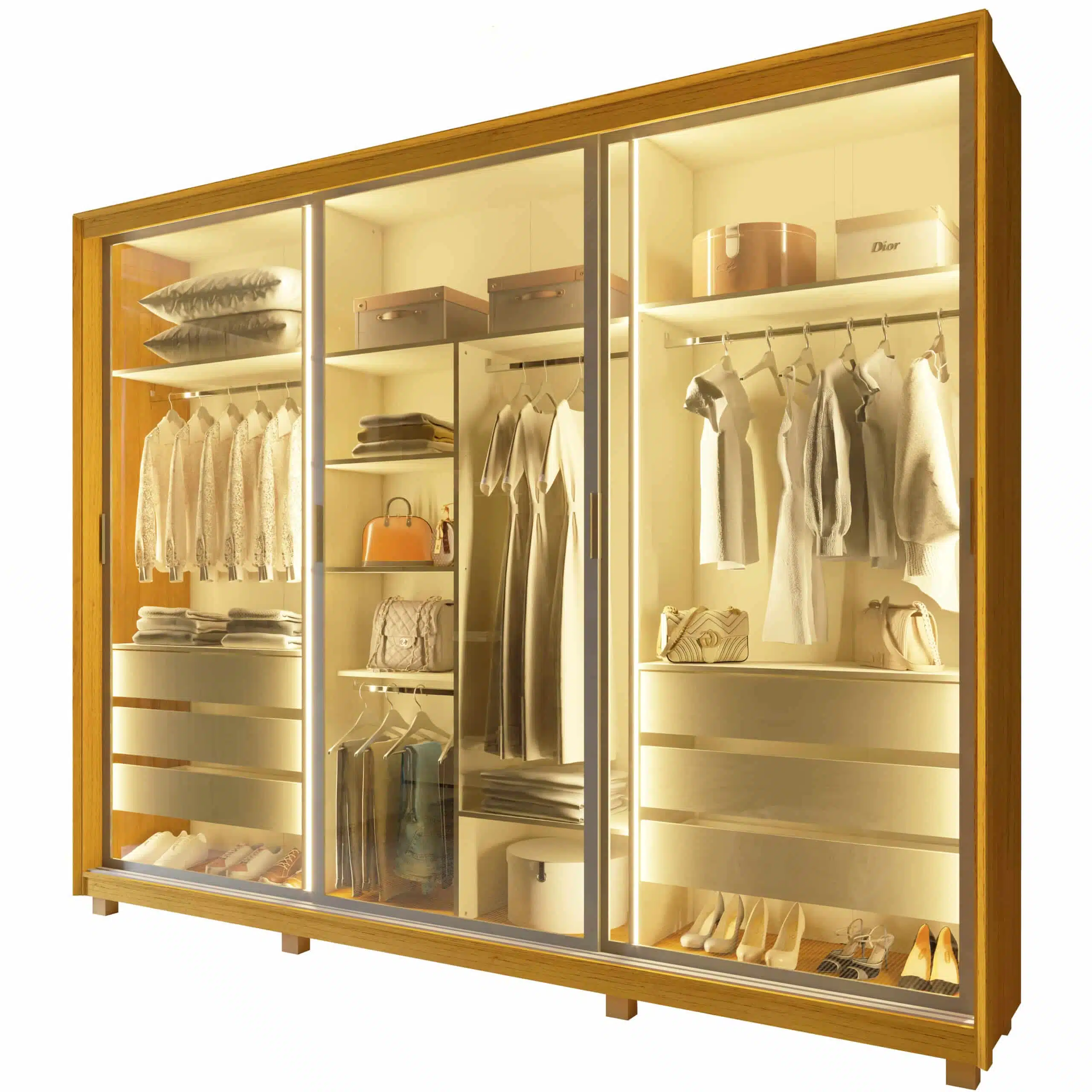 O Roupeiro Platinum 3P é a união perfeita entre inovação, design e funcionalidade. Com portas deslizantes em vidro reflecta, ele traz um toque moderno e sofisticado ao ambiente, além de seguir as principais tendências do mobiliário contemporâneo. O acabamento com requadro em alumínio e iluminação em LED de cor quente nas laterais e divisórias valoriza ainda mais o visual e facilita o uso no dia a dia. Produzido 100% em MDF, conta com seis gavetas com corrediças telescópicas e um interno funcional com divisão ele/ela na elegante cor Off White. Também está disponível com opção de portas em MDF, com kit espelho opcional. Uma solução completa para quem busca elegância, inovação e praticidade no quarto.